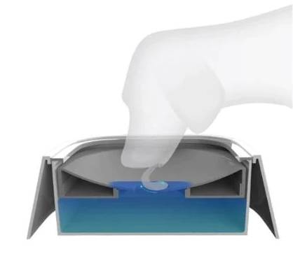 The SplashSaver Dog Bowl is designed with consideration for how dogs drink water using their tongue.